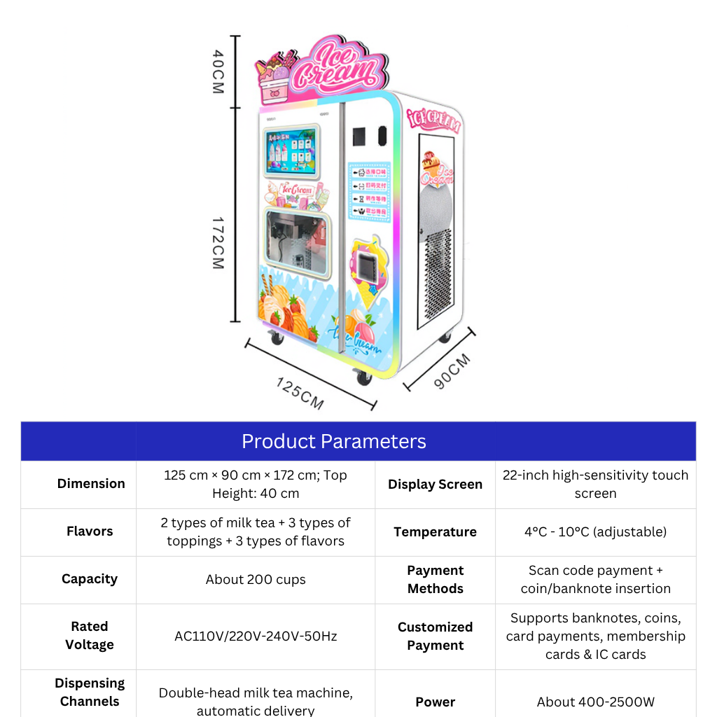 Flavor 2 types of milk slurry+3 types ofjam+3 types of toppings Temperature 4°~10° (adjustable)